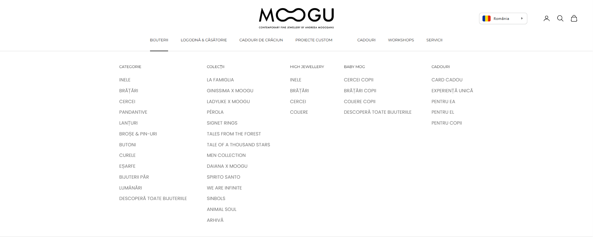 Prin pasiunea și devotamentul său pentru creație, Moogu și-a câștigat reputația în industrie și este recunoscut pentru calitatea și originalitatea fiecărei bijuterii pe care o realizează. Pentru a oferi o experiență îmbunătățită clienților săi, Moogu s-a angajat să-și revizuiască și să-și redefinască prezența online. Cu această inițiativă, Moogu urmărește să ofere o platformă digitală mai intuitivă și mai interactivă, adaptată nevoilor și preferințelor fiecărui client. Scopul său este de a asigura o experiență de cumpărături online plăcută și eficientă, oferind acces la bijuterii unice și personalizate care să încânte și să definească stilul fiecărui client.